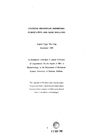 Genetic engineering has produced a transgenic insect- resistant plant which produces a serine protease inhibitor (Hilder et al., 1987). More insects can be targetted if a plant can be made to produce thiol protease inhibitors. Hence this project attempts to do some preliminary work - purification and gene isolation of thiol protease inhibitors, which is necessary before plants resistant to insects using thiol proteinases as their digestive enzymes can be created. It is known that cowpea seeds contain thiol protease inhibitors. However, their protein sequences have never been elucidated. In the first part of the project, _it was attempted to obtain a pure thiol protease inhibitor. This was so that its sequence could be determined partially to construct an oligo-nucleotide probe to pick the gene coding for it from a cDNA library. In the second part of the project, it was attempted to isolate the gene coding for the bromelain inhibitor of pineapple, to clone it up and to sequence it. Though the sequence of this inhibitor has been known for years, its gene has never been isolated or sequenced.