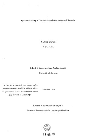 This thesis studies dynamic routing in circuit-switched non-hierarchical networks based on learning automata algorithms. The application of a mathematical model for a linear reward penalty algorithm is explained. Theoretical results for this scheme verified by simulations shows the accuracy of the model. Using simulation and analysis, learning automata algorithms are compared to several other strategies on different networks. The implemented test networks may be classified into two groups. The first group are designed for fixed routing and in such networks fixed routing performs better than any dynamic routing scheme. It will be shown that dynamic routing strategies perform as well as fixed routing when trunk reservation is employed. The second group of networks are designed for dynamic routing and trunk reservation deteriorates the performance. Comparison of different routing algorithms on small networks designed to force dynamic routing demonstrates the superiority of automata under both normal and failure conditions. The thesis also considers the instability problem in non-hierarchical circuit-switched networks when dynamic routing is implemented. It is shown that trunk reservation prevents instability and increases the carried load at overloads. Finally a set of experiments are performed on large networks with realistic capacity and traffic matrices. Simulation and analytic results show that dynamic routing outperforms fixed routing and trunk reservation deteriorates the performance at low values of overload. At high overloads, optimization of trunk reservation is necessary for this class of networks. Comparison results show the improved performance with automata schemes under both normal and abnormal traffic conditions. The thesis concludes with a discussion of proposed further work including expected developments in Integrated Service Digital Networks.