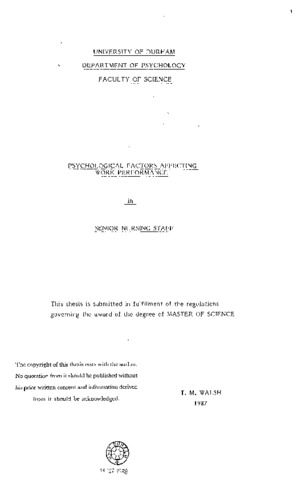 Psychological factors affecting work performance in senior nursing staff