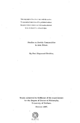 Studies on Jewish communities in Asia Minor