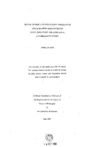 Social change and educational problems in three modern Asian societies:: Japan, Singapore and Hong Kong a comparative study.