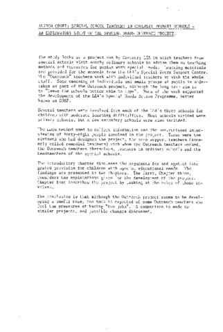 Special school teachers in Coventry primary schools: an exploratory study of the special needs outreach project