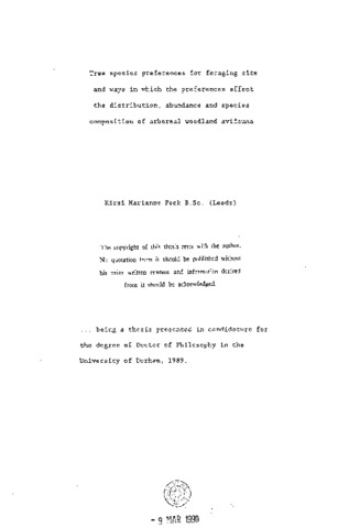 Tree species preferences for foraging site and ways in which the preferences affect the distribution, abundance and species composition of arboreal woodland avifauna