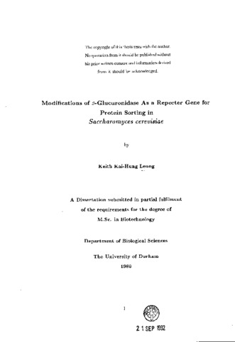 Modifications of β-glucuronidase as a reporter gene for protein sorting in saccharomyces cerevisiae