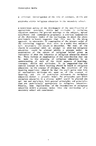 A critical investigation of the role of concepts, skills and attitudes within religious education in the secondary school.