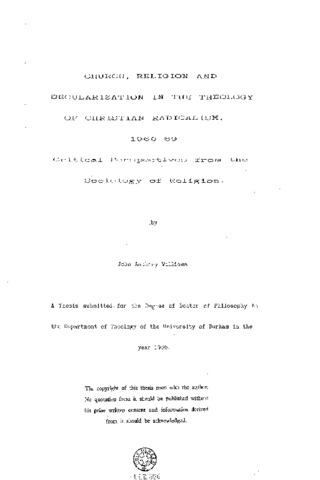 Church, religion and secularization in the theology of Christian radicalism: 1960 - 69 critical perspectives from the sociology of religion