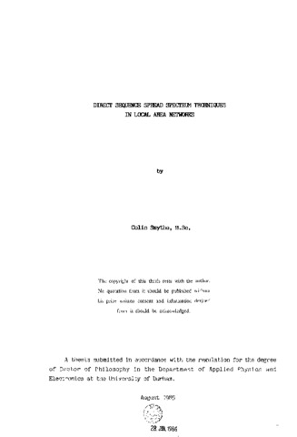 This thesis describes the application of a direct sequence spread spectrum modulation scheme to the physical layer of a local area networks subsequently named the SS-LAN. Most present day LANs employ erne form or another of time division multiplexing which performs well in many systems but which is limited by its very nature in real time, time critical and time demanding applications. The use of spread spectrum multiplexing removes these limitations by providing a simultaneous multiple user access capability to the channel which permits each and all nodes to utilise the channel independent of the activity being currently supported by that channel. The theory of spectral spreading is a consequence of the Shannon channel capacity in which the channel capacity may be maintained by the trading of signal to noise ratio for bandwidth. The increased bandwidth provides an increased signal dimensionality which can be utilised in providing noise immunity and/or a simultaneous multiple user environment: the effects of the simultaneous users can be considered as noise from the point of view of any particular constituent signal. The use of code sequences at the physical layer of a LAN permits a wide range of mapping alternatives which can be selected according to the particular application. Each of the mapping techniques possess the general spread spectrum properties but certain properties can be emphasised at the expense of others. The work has Involved the description of the properties of the SS-LAN coupled with the development of the mapping techniques for use In the distribution of the code sequences. This has been followed by an appraisal of a set of code sequences which has resulted in the definition of the ideal code properties and the selection of code families for particular types of applications. The top level design specification for the hardware required in the construction of the SS-LAN has also been presented and this has provided the basis for a simplified and idealised theoretical analysis of the performance parameters of the SS-LAN. A positive set of conclusions for the range of these parameters has been obtained and these have been further analysed by the use of a SS-LAN computer simulation program. This program can simulate any configuration of the SS-LAN and the results it has produced have been compared with those of the analysis and have been found to be in agreement. A tool for the further analysis of complex SS-LAN configurations has therefore been developed and this will form the basis for further work.