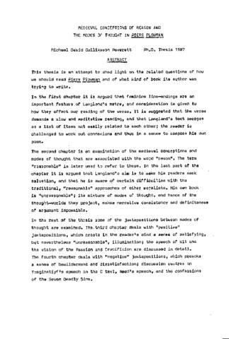 Medieval conceptions of reason and the modes of thought in Piers Plowman