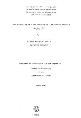 The properties of mixed crystals of zinc-cadmium-sulphide(Zn(_x)Cd(_1-x)S)