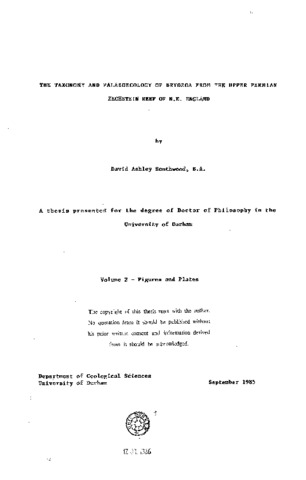 The taxonomy and palaeoecology of Bryozoa from the upper Permian zechstein reef of N.E. Eng1and