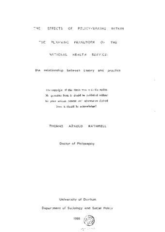 The effects of policy-making within the planning framework of the National Health Service: the relationship between theory and practice