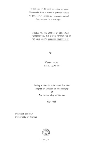 Studies on the effect of oestrogen treatment on the lipid metabolism of the male chick (gallus domesticus)