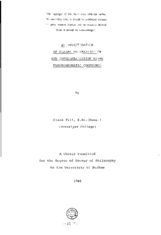 An investigation of plasma polymerization and copolymerization using fluoroaromatic compounds