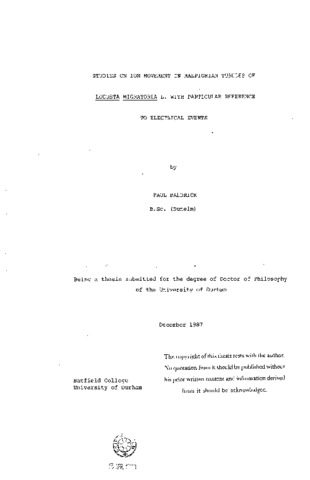Studies on ion movement in malpighian tubules of locusta migratoria l. with particular reference to electrical events