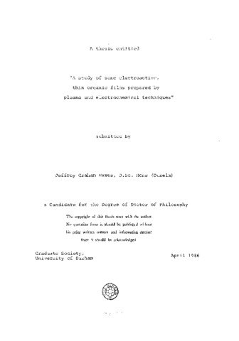 "A study of some electroactive, thin organic films prepared by plasma and electrochemical techniques"
