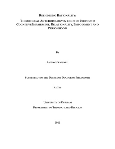 Rethinking Rationality: Theological Anthropology in light of Profound Cognitive Impairment, Relationality, Embodiment and Personhood