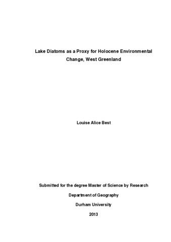 Lake Diatoms as a Proxy for Holocene Environmental Change, West Greenland