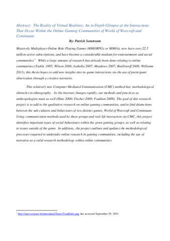 The Reality of Virtual Realities: An in Depth Glimpse at the Interactions That Occur Within the Online Gaming Communities of World of Warcraft and Continuum