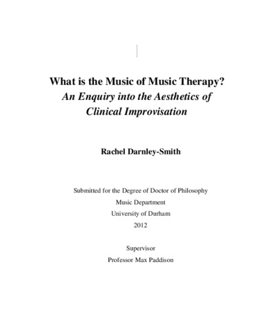 In many places in the Western world where music therapy occurs, improvisation is a significant and widespread practice in clinical work. The question of the nature of improvisation in music therapy is the topic of this enquiry, with particular reference to musical ontology and aesthetics. I examine how a consideration of ontology enables a distinction to be drawn between the music made within the clinical setting, known as clinical improvisation, and music that is made elsewhere. The context for this enquiry is the music therapy practice of the UK. Through an examination of the recent history of this practice, I establish two distinct approaches to clinical improvisation in the UK, music-centred and psychodynamic. I show how there are different ontologies of music ‘at work’ between these two approaches. I also demonstrate how these distinctions manifest in the question of the location of the therapeutic effect: is it in the music or the therapeutic relationship? Finally, I examine the nature of clinical improvisation in relation to performance. I explain how a consideration of distinct ontologies of music within clinical improvisation indicates a further distinction between the music of music therapy and art improvisation that is made elsewhere.