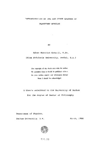 The current status of observations of planetary nebulae and their central stars is presented. Particular attention is given to ultraviolet observations secured with the IUE satellite. The physical processes occurring in these objects are discussed, with emphasis on the atomic data. The planetary nebulae SwSt 1, IC 2501, and NGC 4361 have been observed with the IUE satellite. These observations have been combined with observations made by other workers at optical, infrared, and radio wavelengths in order to determine physical conditions in these objects. The electron density in the compact nebula SwSt 1, determined from the C III λλ1907/1909 line ratio, is high (~10(^5) cm(^-3)), consistent with the high emission measure determined from radio observations. The C/0 abundance ratio in this nebula is found to be < 1 , i.e. the envelope is oxygen rich, as suggested by the identification of the silicate feature in the 8-13 µm infrared spectrum. The ultraviolet spectrum of the central star of SwSt 1 shows a few P Cygni Profiles due to a 2000 km s(^-1) stellar wind. The analysis of observations of IC 2501 suggests that there are two main regions in the nebula: one emitting the [0 III] lines, with T(_e) = 9400 K, the other emitting the [0 II] and [N II] lines, with T(_e) = 9000 K. IC 2501has a marked SiC feature in its 8-13 µm infrared spectrum and has C/0 > 1. The ultraviolet observations are therefore consistent with the interpretation of the infrared observations, namely, that objects with SiC are carbon rich. An ionization model of NGC 4361 is presented which fits the observed ultraviolet and optical line fluxes well. It is found that the inclusion in the model nebula of charge exchange and dielectronic recombination processes greatly improves the computed ionization and thermal structure of the nebula.