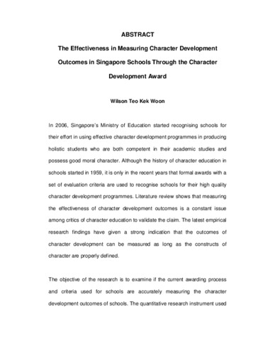 The Effectiveness in Measuring Character Development Outcomes in Singapore Schools Through the Character Development Award