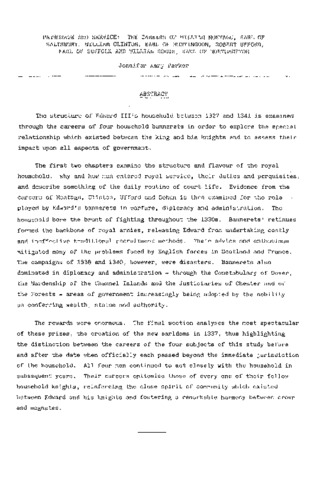 The structure of Edward Ill's household between 1327 and 1341 is examined through the careers of four household bannerets in order to explore the special relationship which existed between the king and his knights and to assess their impact upon all aspects of government. The first two chapters examine the structure and flavour of the royal household: why and how men entered royal service, their duties and perquisites, and describe something of the daily routine of court life. Evidence from the careers of Montagu, Clinton, Ufford and Bohun is then examined for the role-played by Edward's bannerets in warfare, diplomacy and administration. The household bore the brunt of fighting throughout the 1330s. Bannerets' retinues formed the backbone of royal armies, releasing Edward from undertaking costly and ineffective traditional recruitment, methods. Their advice and enthusiasm mitigated many of the problems faced by English forces in Scotland and France. The campaigns of 1338 and 1340, however, were disasters. Bannerets also dominated in diplomacy and administration - through the Constabulary of Dover, the Wardenship of the Channel Islands and the Justiciaries of Chester and of the Forests - areas of government increasingly being adopted by the nobility as conferring wealth, status and authority. The rewards were enormous. The final section analyses the most spectacular of these prizes, the creation of the new earldoms in 1337, thus highlighting the distinction between the careers of the four subjects of this study before and after the date when officially each passed beyond the immediate jurisdiction of the household. All four men continued to act closely with the household in subsequent years. Their careers epitomise those of every one of their fellow household knights, reinforcing the close spirit of community which existed between Edward and his knights and fostering a remarkable harmony between crown and magnates.
