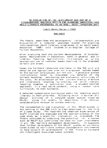 An evaluation of the development and use of a microcomputer assisted system for planning individualised adult literacy programmes in an adult basic education unit