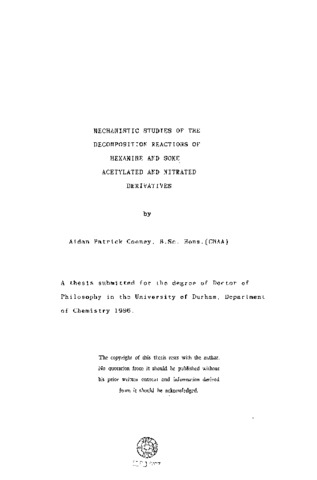 Mechanistic studies of the decomposition reactions of hexamine and some acetylated and nitrated derivatives.