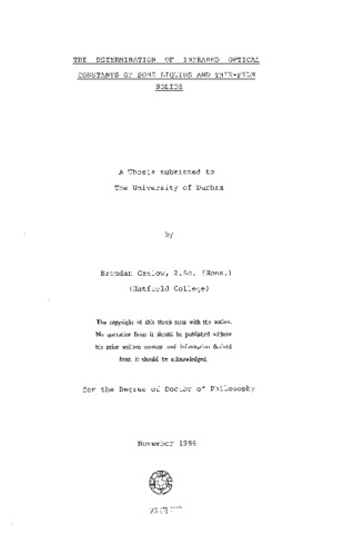 Fourier transform infrared techniques have been applied in order to determine the optical constants of several liquid and thin-film solid systems over infrared frequencies. In the far infrared region, dispersive interferometry has been employed leading to the derivation of both real and imaginary parts of the complex refractive index in one experiment. As an extension to this, a method has been devised for the analysis of ‘full interferograms' involving multiple internal reflections that inevitably arise for normal transmission through thin parallel specimens. A program has been written which constrcts a theoretical complex insertion loss for the system understudy and then performs an iteration on estimated values for absorption coefficient and refractive index. Results are presented for several liquids analysed using this technique. The bandshapes of pure acetonitrile and benzene have been studied in the far infrared region of the spectrum. This was as a consequence of claims in the literature [83,84] that discernable structure in such bandshapes indicated the presence of long-ranged order in molecular liquids. Bandshapes have been produced using both non-dispersive and dispersive transmission, and spectra from both experiments have been averaged. These are presented together with the standard deviation on the mean. It is concluded that there is no evidence for real structure above the level of the noise in the spectra. The collision-induced spectrum of iodine in benzene has been studied in the far infrared region. Subsequent analysis has been done in both the frequency domain and the time domain in order to examine the nature of the intermolecular interactions and the time evolution of the relaxation processes. Experimental intensity and second moment data have been found to agree well with those predicted by a theory based only on classical electrostatic forces of attraction. Spectra have been modelled using two approaches for solving the generalised Langevin equation. The fits were found to be reasonable and the fitted parameters have been used to study the interactions involved in the system. A mid infrared study of Langmuir-Blodgett films has been undertaken, involving layers of w-tricosenoic acid on a silicon substrate. Anomalies in the carbonyl intensities for the first few layers have been attributed to the partially polarised nature of the incident radiation, and have been used to study the orientation of the fatty acid molecules relative to the substrate surface. A variable temperature cryostat with sample-holder has been interfaced with a Beckmann FS720 interferometer. This has been used to measure the optical constants of several solids over a limited frequency range in the far infrared.