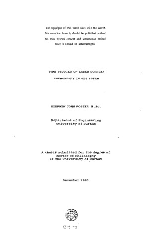 Some studies of laser doppler anemometry in wet steam