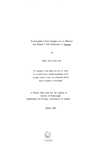 Histocompatibility Recognition in Effector and Helper T Cell Responses of Xenopus.