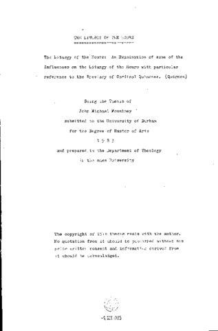 The liturgy of the hours: an examination of some of their influences on the liturgy of the hours with particular reference to the breviary of cardinal quinones. (quignon)