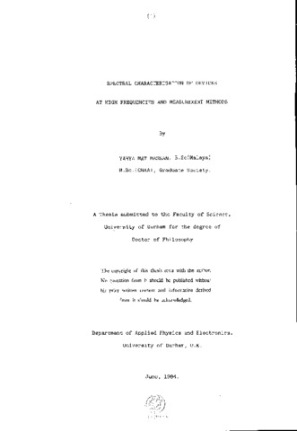 The properties of nonlinear devices, semiconductor diodes, were determined at high frequencies using the method of spectral characterisation. Such characterisation was carried out employing a specially developed technique where the components of the harmonic spectrum generated within these diodes at radio and microwave frequencies were measured. The theory of spectral analysis, based on Fourier principles, was reviewed. It was applied to the periodic gate function, which plays a fundamental role in signal analysis, in order to lay the foundation for the theoretical investigation carried out between pulses of known shapes and their corresponding spectra. Some useful relationships were established and applied in the evaluation of devices. Based on the fundamental properties of the periodic gate function, two new sampling procedures were introduced. The harmonic generating properties of practical diodes, where the nonlinearity in the element is an inherent condition, were examined. It was established that the spectrum generated within the device, at a particular drive level, gives the "fingerprint" of the diode, i.e. represents fully its nonlinearity. Measurement methods, both at low and high frequencies, were also discussed. The new technique, called the Multiple Reflections Resonant Line (MRRL) method was developed and described in the thesis to measure a complete spectrum. The method employed a coaxial slotted line system terminated by the device under test. The basic transmission line theory was extended to include the phenomena of multiple reflections along and resonance of, the line. The properties of the standing waves were then related to the device parameters. The twelve microwave diodes were successfully modelled which included parasitics using the new spectral technique. An attempt was made to evaluate these devices for particular applications.