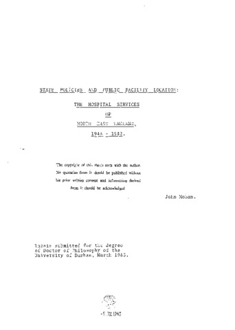 State policies and public facility location: the hospital services of north east England, 1948 - 1982
