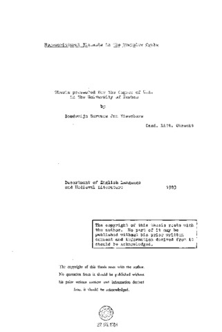 This study discusses non-biblical material in seven of Towneley's plays. Five of these plays, Mactacio Abel (II), Processus Noe cum Filiis (III), the two shepherds' plays (XII, XIII) and the Processus Talentorum (XXIV), are (influenced) by the Wakefield Master, whereas the Processus Prophetarum (VII), and the Suspencio lude (XXXII) are not. It is argued that although each of these plays conforms to a theme current throughout the cycle - to convert and ask for mercy - the -plays attributed to the Wakefield Master also pursue a different thematic concern of their own. The non-scriptural elements can be described in terms of allusions to, and traces of, folklore customs, folktales and legendary material, social criticism and comment, inclusion of fictional characters introduced by the playwright(s) and a vivid portrayal of characters with human dimensions,, By focussing on the significance of these features, their reason for introduction, their sources, and on whether a partially illiterate audience could have been familiar with them, it is suggested that although most of the material is traditional, the Wakefield Master used it in a unique way. Introducing new elements, or modifying material already present in the cycle, he reveals a predilection for depicting interpersonal conflict. This frictional relationship between man - man, based on a difference in commitments and found only where the Wakefield stanza is present, is reflected in man's relation to God. The study suggests further that the author of the Processus Prophetarum may have used a breviary as his source, and that the Judas legend on which the Suspencio lude is based resembles a particular offshoot of the OEdipus legend. Of the twenty-one plates illustrating points of view, one involving a close folklore analogy to Mak's tossing in the Secunda Pastorum has hitherto received no attention, whereas some others dealing, with the Noah legend have not been discussed before in English.