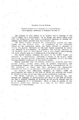 Pauline Eucharistic Theology in 1 Corinthians, with special reference to Chapters 10 and 11.