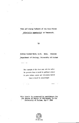 Time and energy budgets of the grey plover (Pluvialis squatarola) at Teesmouth