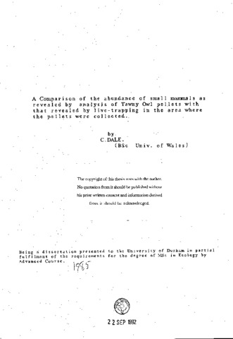 A Comparison of the abundance of small mammals as revealed by analysis of tawny owl pellets with that revealed by 1ive- trapping in the area where the pellets were collected