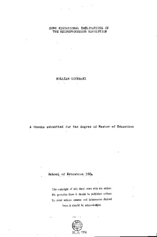 The development of the microprocessor has enabled a whole new generation of sophisticated electronic devices to be produced. Microprocessors are cheap to make, versatile in their range of application, and can be used to produce powerful computers and sophisticated pieces of control apparatus, which are being widely deployed in industry and commerce. They are also cheap enough to be used in a variety of household devices, from washing machines to videogames. This thesis examines some of the effects which the microprocessor might have on people's lives in the future, and the educational implications of their proliferation. From the educational point of view there are, perhaps, two broad areas of interest; firstly, direct effects arising from the introduction of microprocessors into educational establishments and, secondly, the indirect effects arising from changes in society. Before attempting to predict future changes in the educational system it is useful to review some current areas of interest and, therefore, some aspects of educational theory which may be relevant are examined. One widely accepted view of the microprocessor revolution is that it will lead to massive unemployment, and the validity of this view is examined. Some of the predictions of job losses which may ensue are also considered, together with some of the possibilities for occupying increased leisure time which may result. The concept of "education for leisure" is examined vis-a-vis possible changes in employment patterns. The direct role of microprocessors in schools is considered, together with future implications for teaching and learning. Possible consequences on the curriculum are discussed.