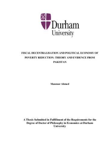 FISCAL DECENTRALISATION AND POLITICAL ECONOMY OF POVERTY REDUCTION: THEORY AND EVIDENCE FROM PAKISTAN