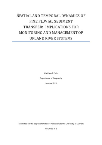 SPATIAL AND TEMPORAL DYNAMICS OF FINE FLUVIAL SEDIMENT TRANSFER: IMPLICATIONS FOR MONITORING AND MANAGEMENT OF UPLAND RIVER SYSTEMS