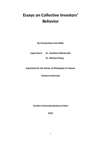 | Uncontrolled Keywords | Behavioral Finance, Herding, Feedback Trading |