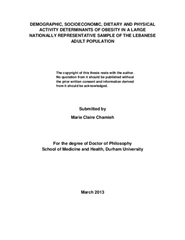 Demographic, socioeconomic, dietary and physical activity determinants of obesity in a large nationally representative sample of the Lebanese adult population.