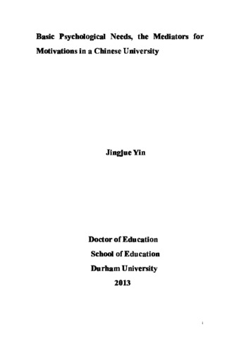 Basic Psychological Needs, the Mediators for Motivations in a Chinese University