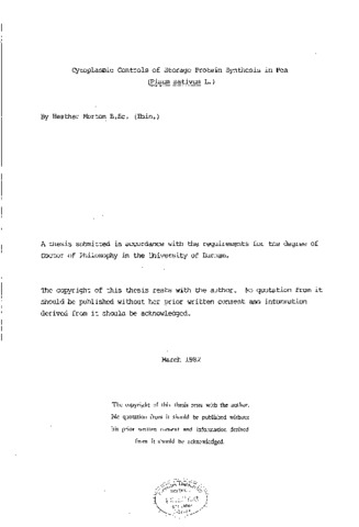 Cytoplasmic controls of storage protein synthesis in pea (Pisum sativum L.)