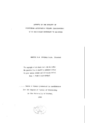 Aspects of the ecology of coleophora alticolella zeller (lepidoptepa) with particular reference to altitude