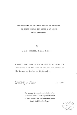 An experiment designed to measure Cerenkov radiation from cosmic ray extensive air showers was deployed at Dugway, Utah from October 1977 to March 1980. This thesis is concerned with Cerenkov light measurements made at Dugway during the second season of observation from October 1978 to March 1979.An introduction to cosmic rays and extensive air showers is followed by a review of previous studies (both theoretical and experimental) of Cerenkov radiation from EAS. Particular attention is given to Cerenkov light parameters which relate to the depth of electron cascade maximum. A detailed account of the design and performance of the array of Cerenkov light detectors is then given, combined with an account of the first season of observation from October to December 1977.The calibration of the equipment during the second season of observation is discussed, indicating the sensitivity of the equipment to a light flux. This is followed by a description of the procedure employed to reduce the data from the experiment. A small sample of the recorded showers was selected to form the basis of a preliminary analysis presented in this thesis. Analysis of this sample of showers enabled the average characteristics of Cerenkov radiation from showers of energy 5x10(^16) - 5x10(^17)eV to be determined. The study of the average characteristics of Cerenkov radiation indicated that the lateral distribution of photon density, the peak height and FWHM of the Cerenkov pulses were sensitive to the zenith angle and energy of the showers. From the lateral distribution of photon density a primary energy estimator was established. Consistency was found between the preliminary results presented here and computer simulations. There were also favourable comparisons between the results of the Dugway experiment and similar measurements made at other establishments. A survey of vertically incident computer simulations of extensive air showers indicated that the basic assumptions behind the recently introduced elongation theorem may not be valid. Finally, a review of the future work of the Dugway experiment is presented.