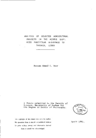 Analysis of selected agricultural projects in the middle east: with particular reference to Tauorga, Libya