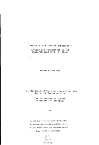 Towards a "new kind of sublimity": liturgy and incarnation in the dramatic work of T.S. Eliot