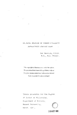 Critical edition of Pierre D'Ailly's Abbreviatio Dyalogi Okan.